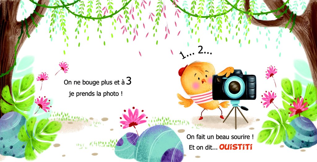 Un album répétitif, le texte est court et simple. Chaque double page illustre différents animaux qui prennent leur photo de classe. Les illustrations sont très chouettes à regarder. Il y a aussi un intrus à trouver dans toute les photos.